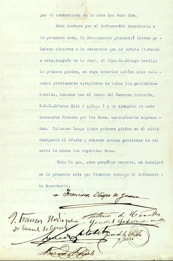 (Ampliar) - Acta de la col·locació de la primera pedra de l'edifici el 30 d'octubre de 1916. Revers. Fons Ajuntament de Girona.