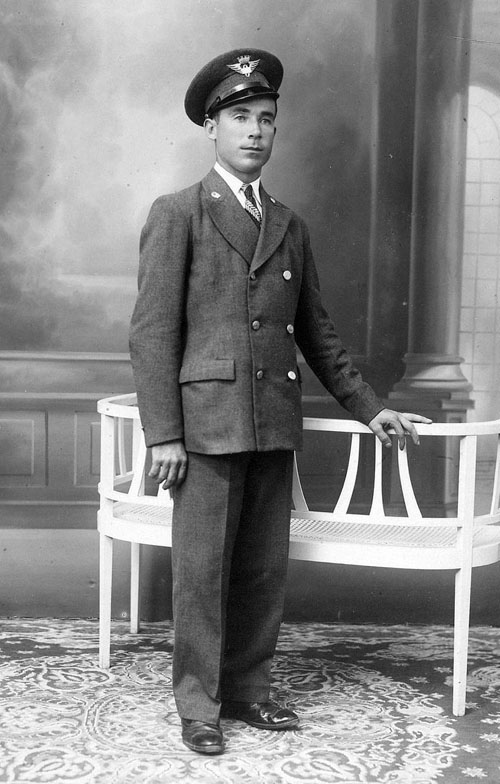 (Ampliar) - Retrat d'estudi de Ginés Vivancos Blaya amb l'uniforme de funcionari de Correus. 1928. Joan Barber Garriga. CRDI - Ajuntament de Girona.