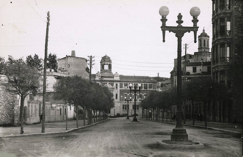 (1) - Vicenç Fernández i coll, al llibre citat a la bibliografia, esmenta que l'edifici que va ocupar Correus "...abans estava composada per dues altres que donaven al carrer Ballesteries [...] restant reunides en una sola per haver-les enderrocat i reedificat en una sola planta, donant-les més amplada per part del pany de la muralla i terrassa que servia per la presó (de dones), essent cedit el terreny per l'Ajuntament per evitar el repugnant aspecte que presentava". Tornar al text