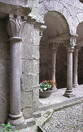 Capitells i racó del claustre del monestir de Sant Daniel