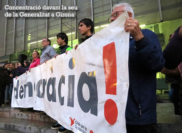 El dijous 19 d'octubre de 2017, va tenir lloc una concentració, convocada pel col·lectiu Girona Vota, davant la seu de la Generalitat a Girona, en protesta per la repressió i l'aplicació de l'article 155, sota el lema "Defensem les institucions catalanes. Avancem cap a la República", amb una participació d'unes 700 persones, malgrat la pluja. Una hora més tard, a les vuit del vespre, es va iniciar una marxa que va sortir de la Plaça de la Constitució i va acabar davant de la subdelegació del govern espanyol. Es varen escoltar parlaments de la portaveu de Girona Vota, Sandra Casado, i d'Àdam Bertran, entre d'altres.