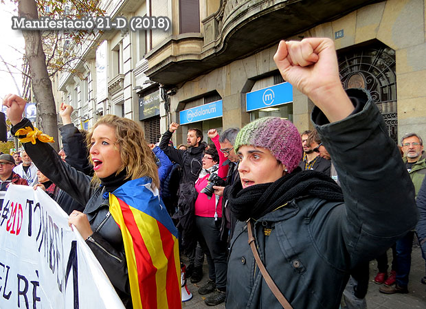 El divendres 21 de desembre 2018, i com a protesta per la celebració d'un consell de ministres a Barcelona i per demanar el desplegament de la república catalana, va tenir lloc una concentració davant la subdelegació del govern espanyol a Girona, a la Gran Via de Jaume I davant la plaça de l'U d'octubre de 2017. Seguidament, després de diversos parlaments, la manifestació es va desplaçar fins davant els Jutjats de Girona. L'acte va ser convocat per la Intersindical amb l'adhesió de diverses entitats i partits (Girona Vota, ANC, Òmnium, ADAC, CUP, ADIC, CRD...).