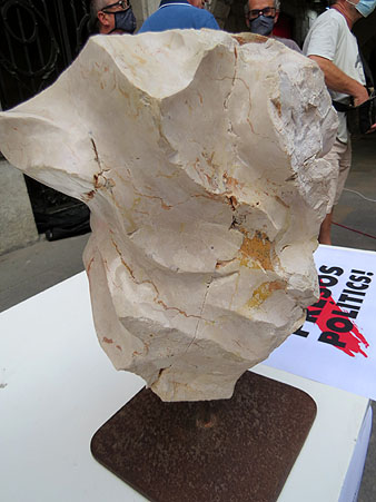 També es va presentar l'escultura "Presó i Dignitat", de Carreras de Cabrera, que l'escultor va treballar d'una pedra calcària recollida prop de la presó d'Estremera. En una cara presenta una au rapinyaire que simbolitza la repressió violenta, i de l'altra, polida i de formes harmòniques, la dignitat dels presos polítics.