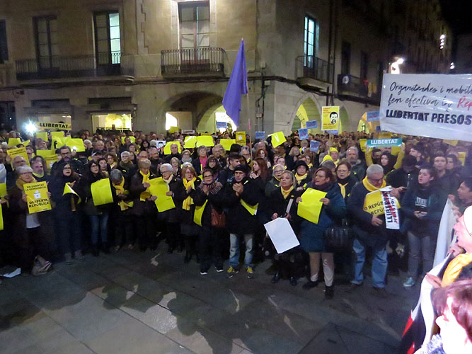 Concentració a la plaça del Vi de protesta pels tres mesos de presó de Jordi Sànchez i Jordi Cuixart Concentració a la plaça del Vi de protesta pels tres mesos de presó de Jordi Sànchez i Jordi Cuixart Concentració a la plaça del Vi de protesta pels tres mesos de presó de Jordi Sànchez i Jordi Cuixart