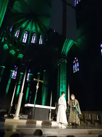 El divendres 26 d'abril 2024 es va representar per vuitè any, a la nau gòtica de la Catedral de Girona, la "Consueta de Sant Jordi cavaller", un text mallorquí d'autor desconegut del segle XVI, d'un marcat caràcter didàctic i apologètic. L'adaptació i la dramatúrgia és obra de Josep Romeu Figueras. Els actors i actrius que van donar vida als personatges van ser Guillem Fernàndez-Valls, Jordi Subirà, Ferran Frauca, Mireia Vallès, Pep Massó i Pol Frauca. Antoni Madueño va ser l'encarregada del cant, i la música de l'orgue va ser interpretada per Pau Riuró, qui també va fer l'adaptació musical, juntament amb Ferran Frauca. Entre l'attrezzo s'hi va incloure el drac, dissenyat per Nuxu Perpinyà.
