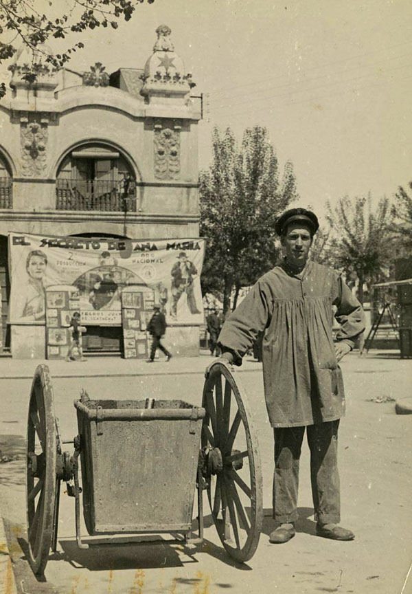 - Retrat d'un escombraire a la plaça Independència davant el teatre Coliseu. 1936. Salvador Crescenti Miró. Ajuntament de Girona - CRDI