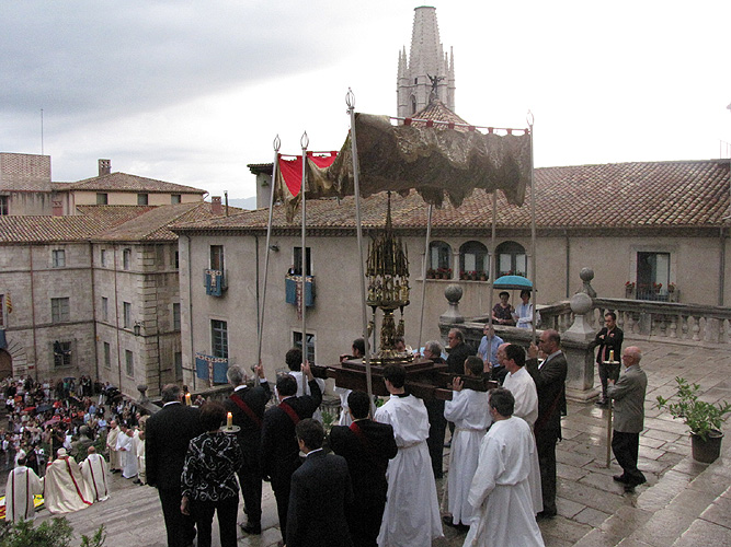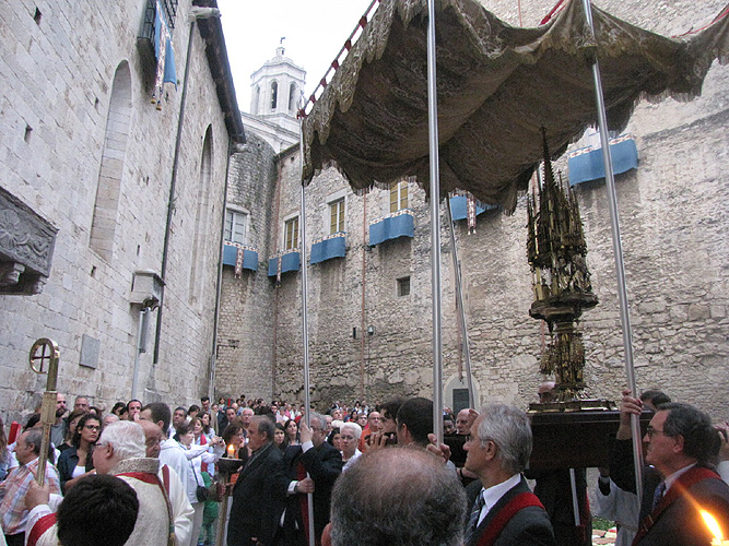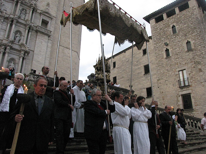 La processó de Corpus 2012. Finestres endomassades i el campanar de la Catedral