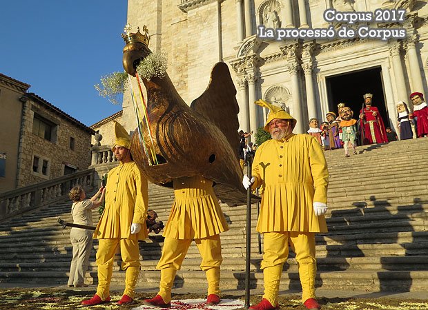 El diumenge 18 de juny 2017 es va celebrar la festivitat de Corpus a Girona. Finalitzat el ball de l'Àliga a la nau, es va iniciar la processó des de la Catedral a la basílica de Sant Feliu de Girona, precedida per l'imaginari festiu de la ciutat, l'Àliga, els quatre gegants i els capgrossos, i els bastoners de Fal·lera Gironina.