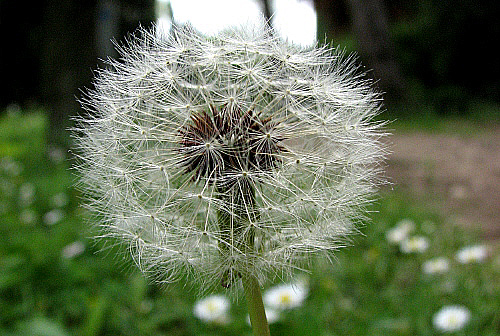 Dent de lleó (Taraxacum officinale)![]() El fruit és una veritable joguina de la natura, en el sentit que convida a bufar els plomalls, que ràpidament s'escampen per arreu. La mainada hi jugava provant de fer-los volar tots d'un sol bufet. ![]() A les nostres contrades és molt freqüent i relativament abundant, per exemple als voltants de la Torre Gironella, o als prats de la Vall de Sant Daniel, indrets en els que s'han près les fotografies. ![]() A aquesta planta se li atribueixen propietats medicinals, generalment mitjançant infusió de l'arrel: estimulant de la funció hepàtica i biliar, diurètic, aperitiu, laxant suau, ajuda a la cicatrització de ferides i llagues, etc., així com també se l'utilitza com una verdura fresca més a les amanides, a les que aporta un toc amargant. ![]() Les aplicacions gastronòmiques de la planta es refereixen a les fulles, que se solen cullir tendres, a principi de primavera, abans que esdevinguin excessivament amargants. També s'utilitza com substitutiu del cafè: s'assequen les arrels al sol o amb un forn sense cremar-les, després s'esmicolen i es torren, per exemple en una paella, remenant-les sovint. Finalment es molen amb dues pedres. |