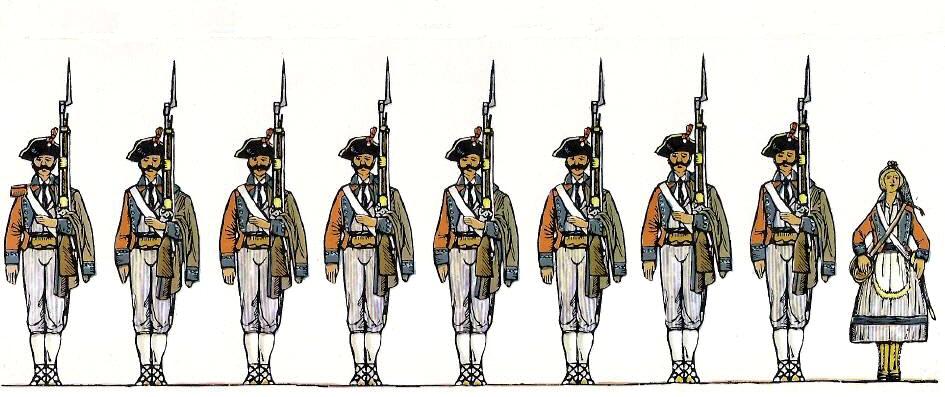 Batalló de Voluntaris d'Infanteria Lleugera de Girona. Dibuixos de Joaquim Pla i Dalmau. Uniforme de creació del cos, novembre 1791