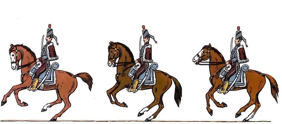 Regiment d'Hússars Espanyols, organitzat a Sarrià de Ter. Dibuixos de Joaquim Pla i Dalmau.