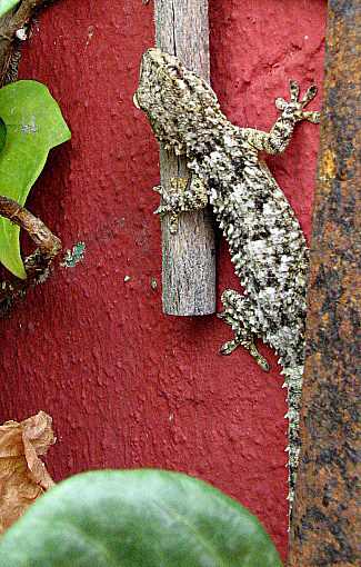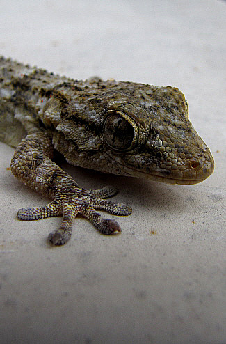 Dragó comú (Tarentola mauritanica)![]() El seu aspecte robust i aplanat, amb una coloració del marró fosc al gris fosc, cua gruixuda i extremitats ben desenvolupades, relativament llargues i un cap ample, arrodonit amb ulls grans, amb la nineta rodona o vertical en funció de la quantitat de llum, li confereixen unes característiques molt específiques. Els dits tenen expansions laterals en el seu extrem i amb una única filera de làmines digitals a la seva cara inferior. El ventre és blanquinós i la seva longitud incloent la cua no supera els 15 cm. El dragó és un animal mediterrani, i per tan adaptat a ambients càlids i secs. Sol habitar de forma natural els rocams, però tolera molt bé diferents graus d’humanització del medi natural; ocupa des de murs de pedra fins parets completament verticals. Els exemplars de les imatges han estat fotografiats en una terrassa del centre de la ciutat, al capvespre; de fet, el dragó és un animal d'hàbits nocturns. ![]() S'alimenta d'artròpodes i de les seves larves, el que anivella l'equilibri biològic urbà. És curiós el costum de perdre la cua quan se sent atacat o agafat; al poc temps li torna a créixer. A l'estiu la femella posa dos ous, normalment, dels que, després d'una incubació de quatre mesos, neixen cries d'una longitud inferior a un centímetre. ![]() |