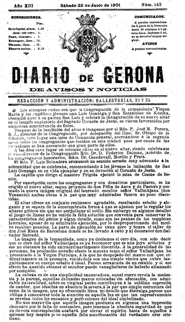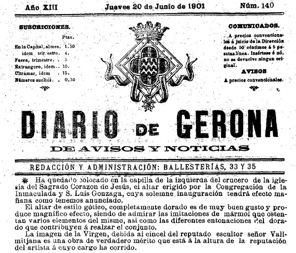 "Diario de Gerona de avisos i notícias" Dijous 20 de juny 1901.