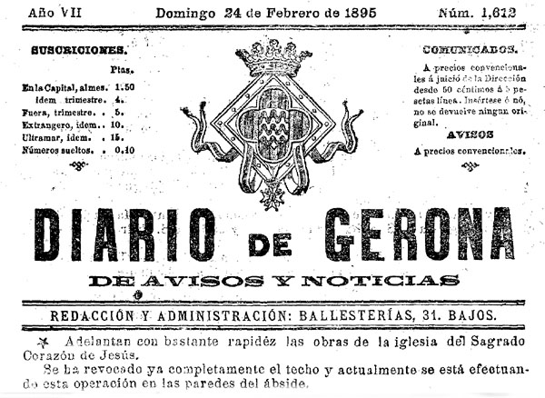 "Diario de Gerona de avisos i notícias" Diumenge 24 de febrer 1895.