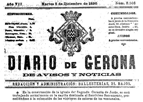"Diario de Gerona de avisos i notícias" Dimarts 8 de desembre 1896.