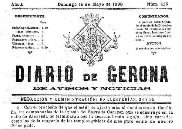 "Diario de Gerona de avisos i notícias" Diumenge 15 de maig 1898.