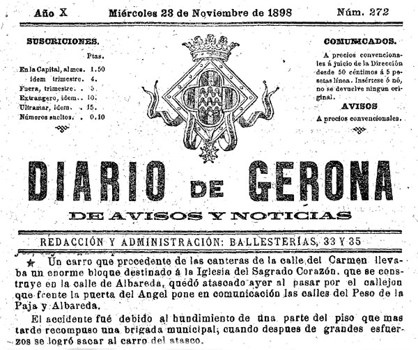"Diario de Gerona de avisos i notícias" Dimecres 28 de novembre 1898.