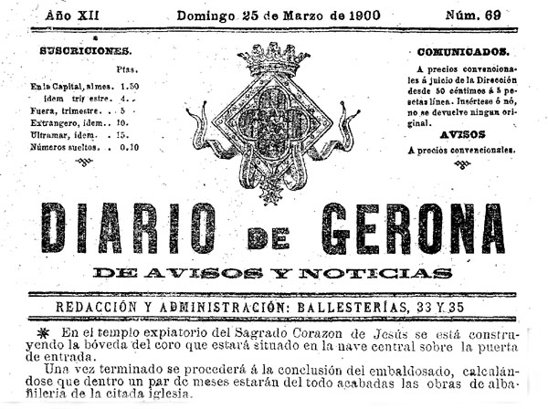 "Diario de Gerona de avisos i notícias" Diumenge 25 de març 1900.