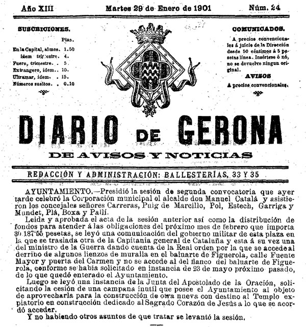 "Diario de Gerona de avisos i notícias" Dimarts 29 de gener 1901.