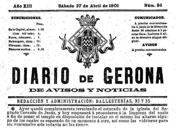 "Diario de Gerona de avisos i notícias" Dissabte 27 d'abril 1901.