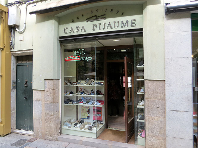 Quan Vicens Pijaume Soler va obrir Casa Pijaume l'any 1875, hi venien esclops, cordes i cordills. La seva especialitat eren les espardenyes de sola de cànem, i en un sol dia en podien vendre centenars a pagesos i treballadors del camp. El seu fill, Ramon Pijaume Vives, va ampliar el negoci amb material de pesca, mentre veia com la moda i els nous materials desbancaven les espardenyes. Però els que més van modernitzar el negoci, amb les noves soles de goma i esportives, van ser les dues generacions que vindrien, amb Vicens Pijaume Juanola i Vicens Pijaume Sureda. S'hi poden trobar espardenyes clàssiques de veta, i també tota mena de calçat adaptat als nous temps, sabates especials per a plantilles i peus delicats i tota mena de calçat per a home i dona (Clarks, Toni Pons, Pikolinos, Aerosoles, Chiruques, etc).
