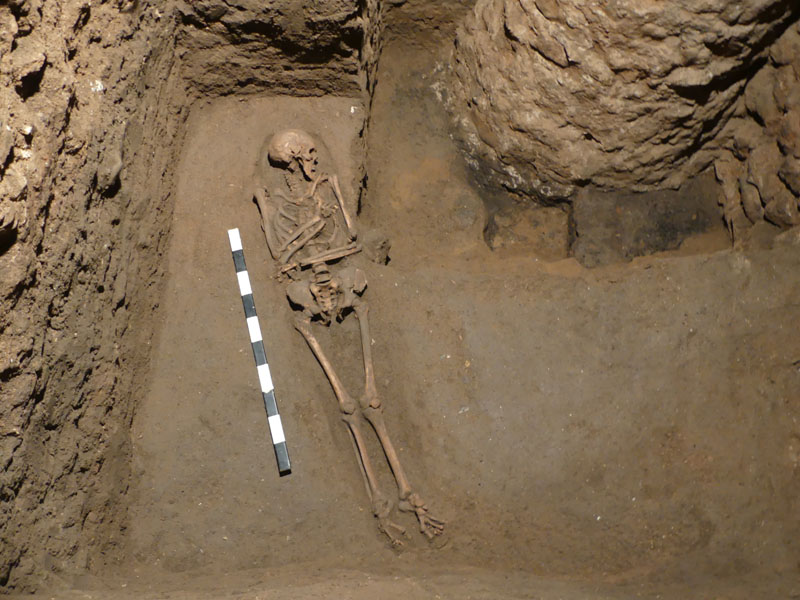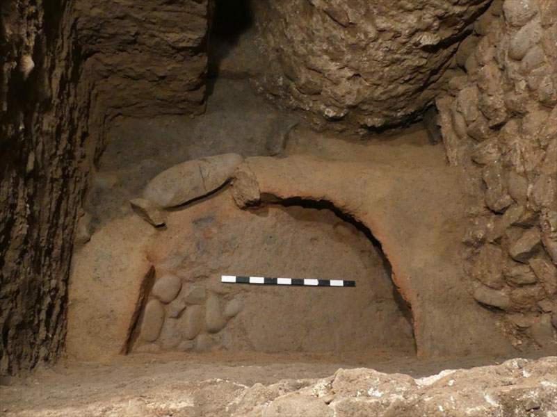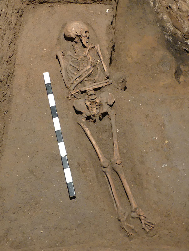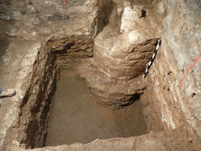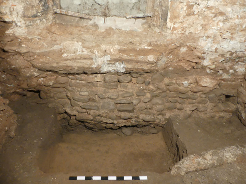 Entre el 6 de juliol i el 9 de setembre 2016 s'ha realitzat a un immoble de la pujada del rei Martí una intervenció arqueològica que ha permès documentar les diverses fases de l’edificació existent, construïda al voltant del segle XIV i que amb diverses reformes estructurals i de distribució s’ha mantingut com a habitatge fins a fins a finals del segle XX. ![]() (Ampliar) - Vista de les restes localitzades al sondeig 1. Sota el mur de la actual façana ha estat localitzat un mur d’una construcció preexistent. Els materials associats a la seva construcció proporcionen una cronologia situada als volts del segle X, en plena època carolíngia.Per sota d’aquesta construcció, han estat localitzades, mitjançant diversos sondejos arqueològics, les restes conservades d’una construcció més antiga, conformada per tres estructures construïdes, conservades en elevació, i els seus corresponents paviments associats (destaca la fàbrica d’una d’elles realitzada en opus signinum). Aquestes restes es troben parcialment fragmentades per la construcció del segle XIV, la qual es va realitzar directament a sobre del seu arrasament. Els materials arqueològics associats a aquesta fase la situen cronològicament als voltants del segle X. ![]() (Ampliar) - Vista de l’estructura circular localitzada al sondeig 2. Tal i com s’indica a la imatge s’observa com les elevacions d’estructures posteriors s’adossen i fragmenten parcialment l’estructura.Finalment, i cobertes per les estructures esmentades, s’han documentat dues fases arqueològiques més. Aquestes testimonien una ocupació de l’indret ja en plena època romana. La primera d’elles, representada per una inhumació en tomba de fosa simple, i una datació baix imperial (segle III dC) ens situa en una àrea funerària, funció no gens estranya si tenim en compte la ubicació del indret; a tocar uns dels vorals de la antiga Via Augusta. ![]() (Ampliar) - Vista de les estructures localitzades a l'interior del sondeig 3. La superposició d’estructures que s’aprecia a la imatge, respon a l’evolució històrica de l’indret.La segona fase, datada al segle I dC i per tant en context alt imperial, ens mostra una funció del espai ben diferent: la producció artesanal. D’aquest moment s’han documentat dues estructures de combustió de les quals tan sols una d’elles ha estat excavada, i respon a un forn, de planta rectangular, excavat al subsòl, amb solera de pedres, parets d’argila rubefactada i boca d’accés construïda. A la banda nord de l’estructura es conserva part de la volta d’argila que cobria la cambra de cocció. (Text base i imatges gentilesa de Maribel Fuertes). ![]() (Ampliar) - Vista de les estructures localitzades a l'interior del sondeig 3. La superposició d’estructures que s’aprecia a la imatge, respon a l’evolució històrica de l’indret.![]() (Ampliar) - Inhumació en tomba de fosa simple, datació baix imperial (segle III dC). |