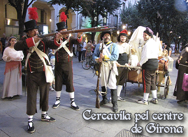 A la plaça de la Independència es va iniciar la teatralització de l'arribada de ciutadans a Girona, escapant de l'arribada dels francesos i cercant refugi a la ciutat. En la seva actuació, en clau d'humor, escenificaren la manca d'aliments que patien i també els enfrontaments entre partidaris de l'absolutisme de Ferran VII i els lliberals "afrancesats".