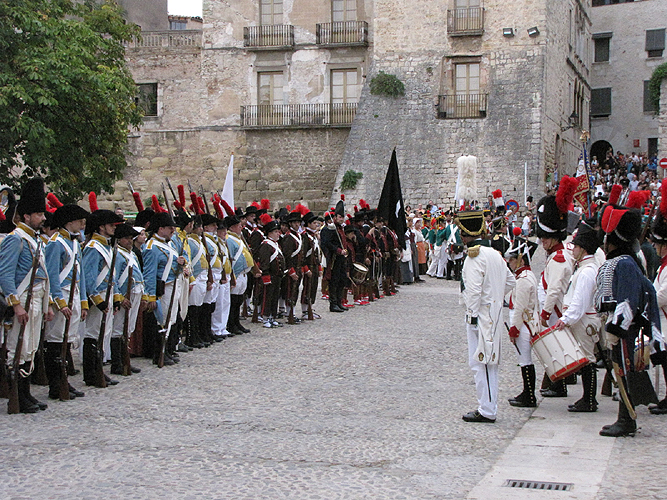 Després de l'escenificació de l'arribada de camperols i ciutadans a Girona fugint de la proximitat de les tropes napoleòniques, a la plaça de Sant Domènec, va tenir lloc l'arribada i presentació de les unitats participants.