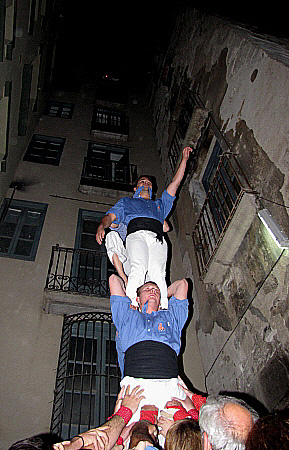 24 d'octubre 2009. Aixecada de Castells de Vigília. Castell a la Plaça del Raïm.