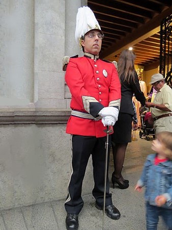 Imatges diverses de les Fires de Sant Narcís a Girona. La policia municipal de gala la diada de Sant Narcís, concerts de bandes, decoracions de balcons amb domassos, fires i mercats de productes alimentaris artesans, etc.