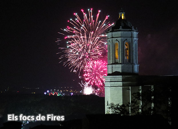 L'espectacle, que va anar a càrrec de la pirotècnia María Angustias Pérez, guanyadora del Concurs de Focs d'artifici de la Costa Brava de Blanes, va durar una mica més d'un quart d'hora, van sembrar el cel de Girona de llum i color.