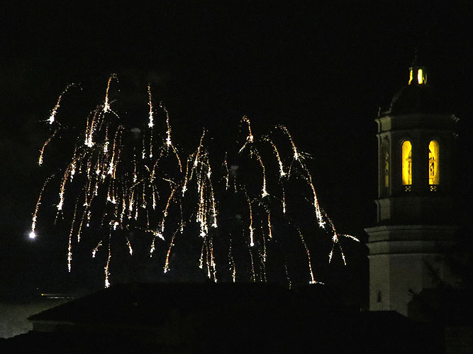 L'espectacle, que va anar a càrrec de la pirotècnia Hermanos Ferrández, de Múrcia, guanyadora del Concurs de Focs de Blanes, va ser l'encarregada de disparar 3.000 ordres de tret. El cel de la ciutat es va cobrir de cors, meduses, ous de dragó i palmeres de colors acompanyats de sons de trons i sirenes per fer pujar l'adrenalina als seguidors que es van concentrar en diferents punts de la ciutat per veure el castell de focs artificials.