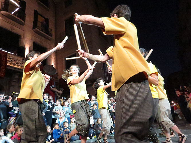 Arribats els gegants i capgrossos de la ciutat, amb els seus bastoners, els de Santa Eugènia, de l'Esquerra del Ter, i la Mula Baba a la plaça del Vi, varen fer ballades, en les que també va participar el Beatusaure i l'Àguila de la ciutat, amb el seu ball de benvinguda a la ciutat.