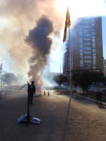 Dins la programació de les Fires de Sant Narcís 2018, el dissabte 3 de novembre va tenir lloc la Gran Tronada de la Festa dels Quatre Rius. Una gran traca, que va fer trontollar literalment la plaça, i que va consistir en 300 metres de petards instal·lats al perímetre i a l'interior de l'espai. Els últims artefactes en explotar van ser quatre morters en honor als Quatre Rius, seguits dels forts aplaudiments per part del públic.