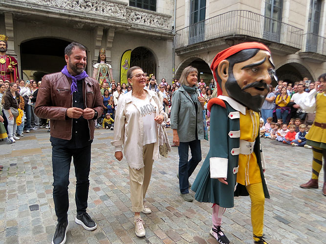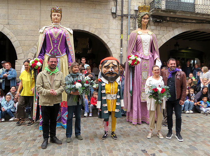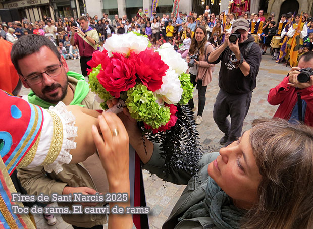 Arribades les gegantes a la plaça del Vi, les germanes Roser i Anna Maria Recasens, que porten la botiga "Recorda-te’n", l'alcalde de Girona, Lluc Salellas, i el 2n tinent d'alcaldia i regidor de Cultura, Quim Ayats, varen canviar els rams de les gegantes. Seguidament varen ballar els gegants i les gegantes.