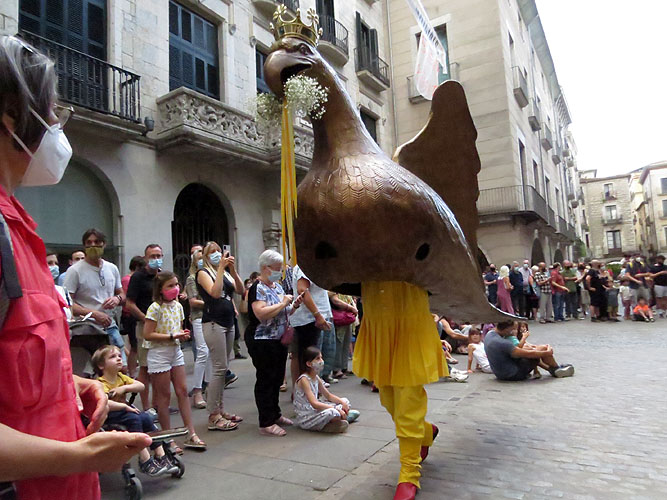 Procedent de Fontajau, i arribada a la plaça del Vi, va ser honorada amb el tradicional ball de l'Àliga de la Ciutat, per després procedir a encendre el peveter pels Diables de l'Onyar. Seguidament, es va llegir el manifest, que, enguany, era de Daniela Grau i Humbert (Elna, 1948).