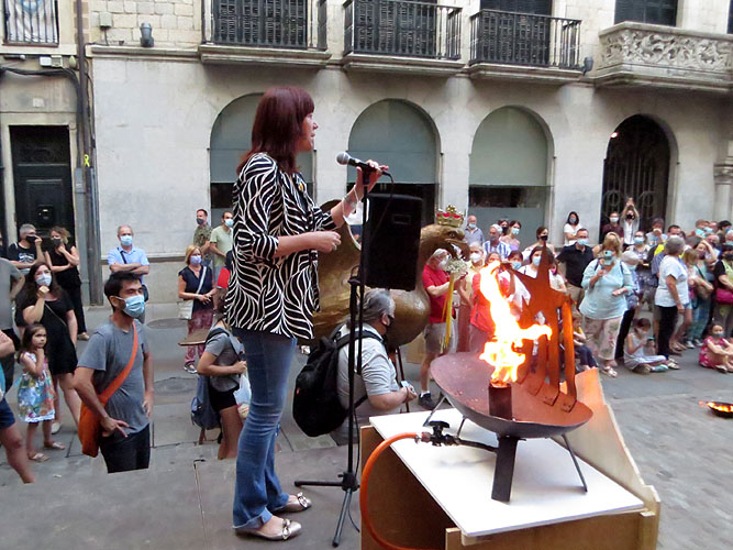 Procedent de Fontajau, i arribada a la plaça del Vi, va ser honorada amb el tradicional ball de l'Àliga de la Ciutat, per després procedir a encendre el peveter pels Diables de l'Onyar. Seguidament, es va llegir el manifest, que, enguany, era de Daniela Grau i Humbert (Elna, 1948).