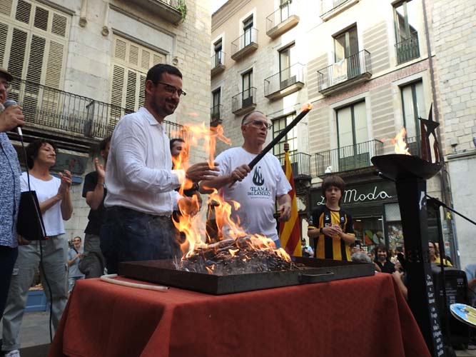 El divendres 23 de juny 2023, vigília de la festivitat de Sant Joan, va tenir lloc l'arribada de la Flama del Canigó a la ciutat de Girona, un dels actes més tradicionals, simbòlics i reivindicatius del país. La Flama va ser acompanyada per una cercavila amb els gegants i capgrossos de la ciutat, bastoners i música de la Fal·lera Gironina, des de la plaça Catalunya, la Rambla de la Llibertat, els Quatre Cantons, el carrer de la Cort Reial i el carrer Ciutadans, per arribar a la plaça del Vi.