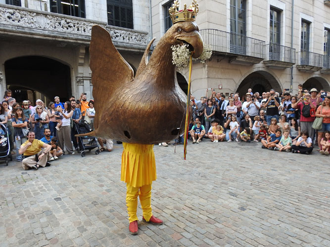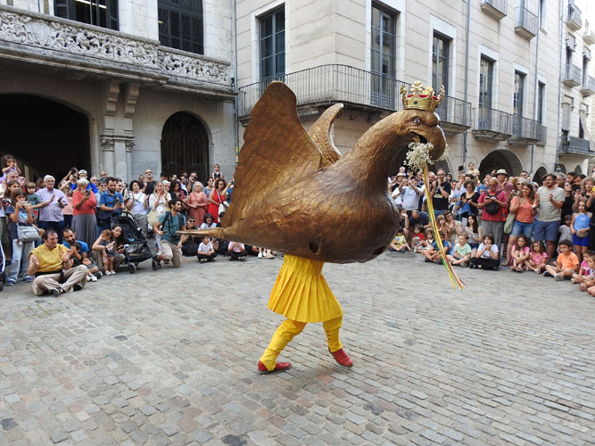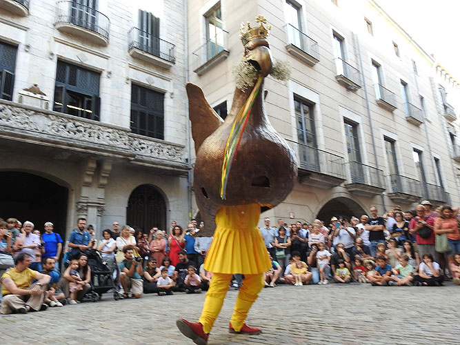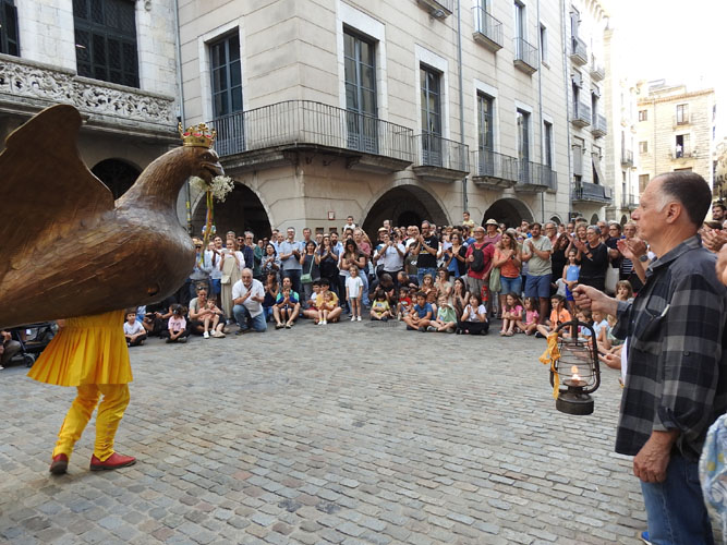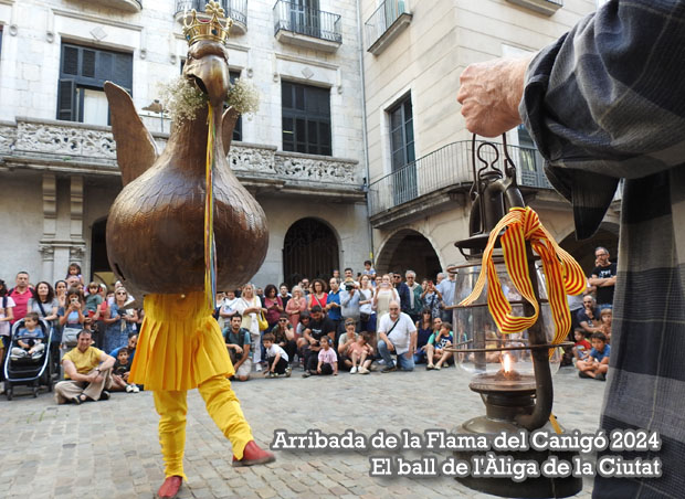 Arribada la Flama i el seguici a la plaça del Vi, va ser rebuda per l'Àliga de la Ciutat, que amb el seu ball d'honor va simbolitzar la benvinguda de Girona.