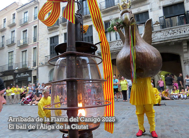 El dilluns 23 de juny 2025, vigília de la festivitat de Sant Joan, va tenir lloc l'arribada de la Flama del Canigó a la ciutat de Girona. Arribada la Flama i el seguici a la plaça del Vi, va ser rebuda per l'Àliga de la Ciutat, que amb el seu ball d'honor va simbolitzar la benvinguda de Girona.