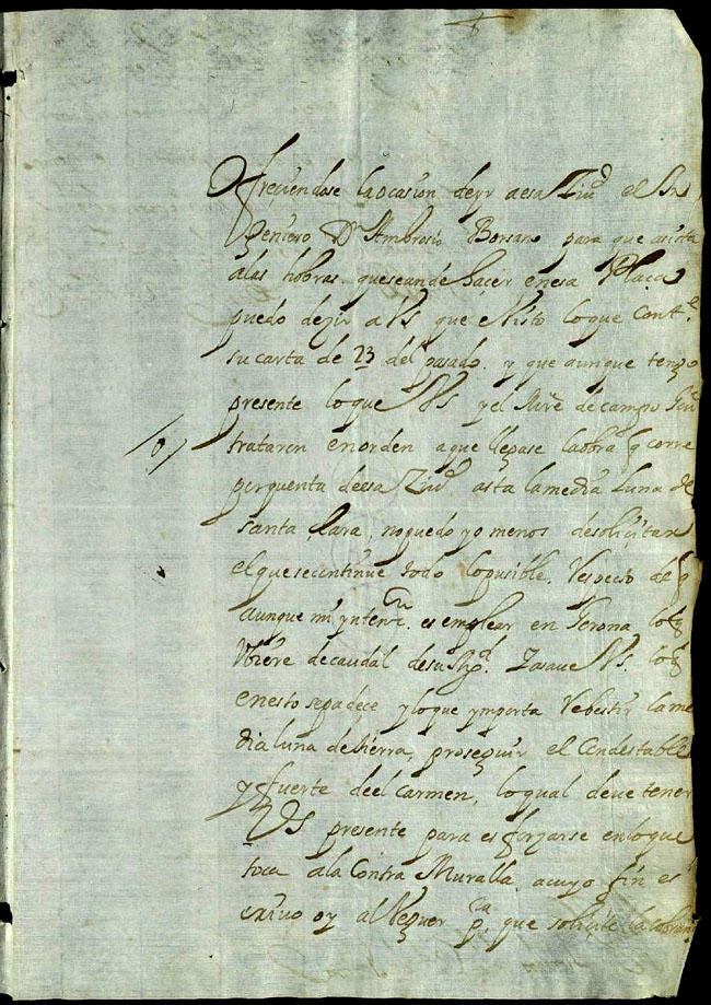 (Ampliar) - 2 d'abril de 1687. El lloctinent Diego Felípez de Guzmán, marquès de Leganés, als jurats de la ciutat de Girona. Els prega que continuïn les obres de fortificació, entre altres del fort del Conestable i que s’esforcin a fer la contramuralla, per les despeses de la qual els comunica que ha escrit al veguer perquè recapti tot el que deu la vegueria. Lletres Reials, Ajuntament de Girona.