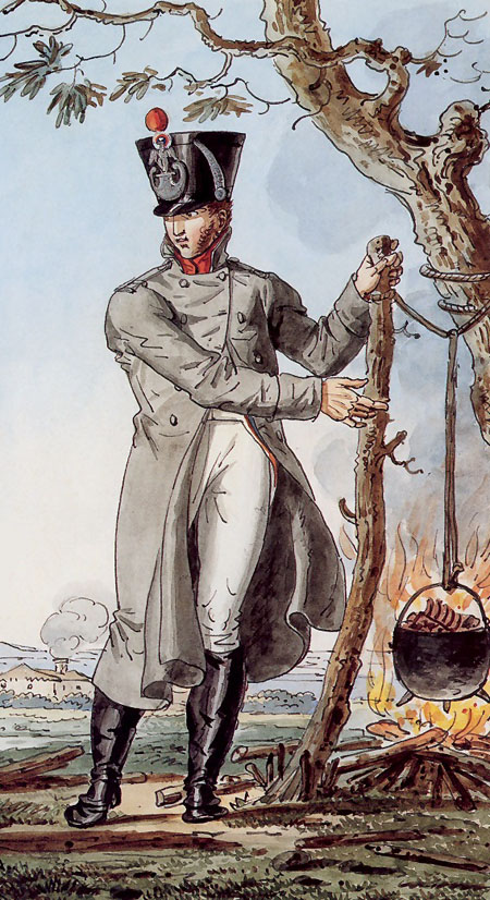 (Ampliar) - Oficial d'infanteria lleugera de l'exèrcit napoleònic. 1812. Carle Vernet, "La Grande Armée de 1812". Viquipèdia.