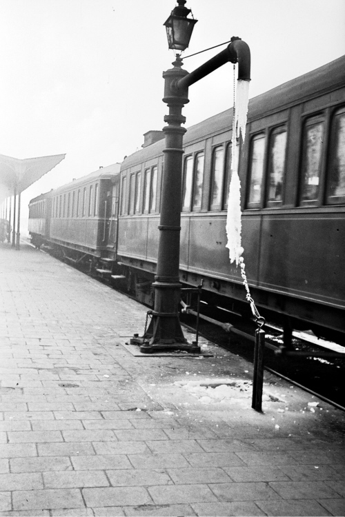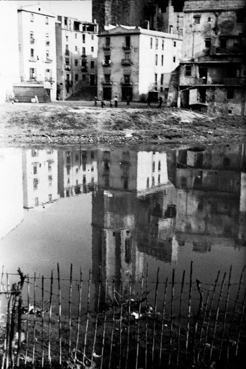 Esquerra: Estació del tren de França, 1956 - (Ampliar) - Dreta: Reflex del campanar de Sant Feliu a l'Onyar glaçat, 1956 - (Ampliar) - Fotografies de Pere Cornellà Creus, gentilesa del Dr. Josep Cornellà i Canals.