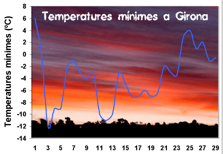 (1) - Dades d'"El clima de Girona i l'onada de fred", article d'Agusti Xercavins Comas, publicat a la Revista de Girona nº 110.