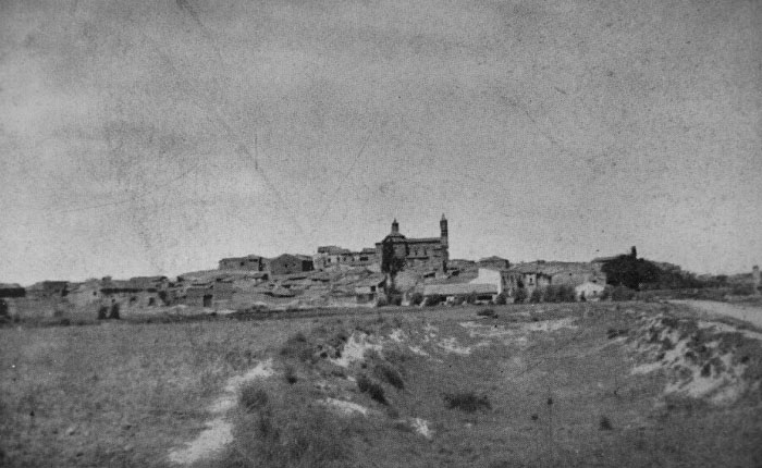 (Ampliar) - Vista del poble de Codo l’any 1937. Imatge de la web requetes.com L’esclat de la Guerra Civil el juliol de 1936 va portar la desgràcia a la família Sàbat. En aquells moments en Josep Mª, que festejava amb una noia anomenada Mª Magdalena Farré i era treballador de la banca gironina Costa i Bartrina, es trobava fent el servei militar a les casernes de Girona; en Lluís apurava les vacances a la llar familiar després d’un feixuc curs de la carrera de Ciències Exactes que estudiava a Madrid; i el menor, en Carles, feia d’aprenent de confiter a la pastisseria can Puig de la Cort Reial. Per tant, el germà gran, fent el soldat, visqué de primera mà la sublevació militar que, sota les ordres del tinent coronel Antonio Alcubilla, es produí a Girona el 19 de juliol; per sort, els comandaments militars es rendiren sense violència aquella mateixa tarda, sent molts els soldats que, aprofitant la situació de total desconcert, abandonaren les casernes per tornar a les seves respectives cases, en Josep Mª entre ells.