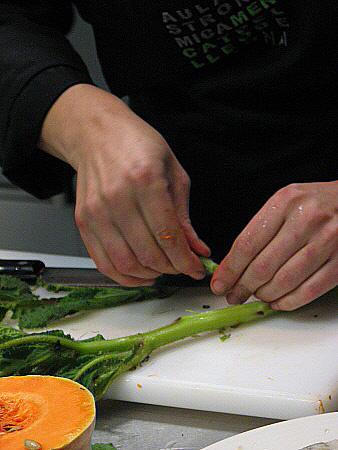 Netegem les plantes de borratja, només aprofitarem les tiges que netejarem amb un fregall per treure'n tots els pèls. Si la planta té flors les reservem per decorar.