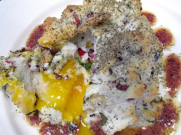Rovell d'ou dins un niu de merenga de flors