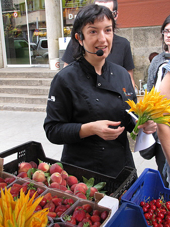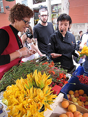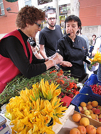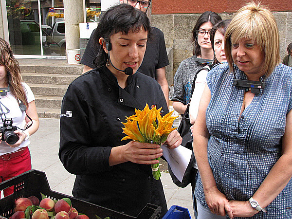 Abans de començar la sessió, es va procedir, amb la participació de tots els assistents, a la compra dels ingredients necessaris a les diverses parades del Mercat del Lleó de Girona. Aquest n'és el reportatge. |