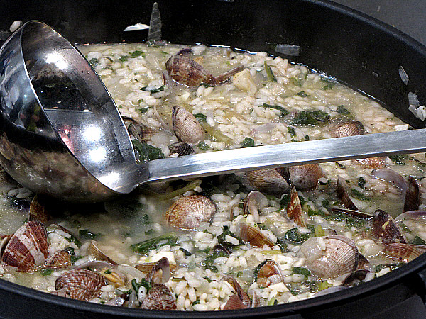 Quan a l'arròs li faltin 10 minuts hi afegirem les cloïsses amb la seva salseta.