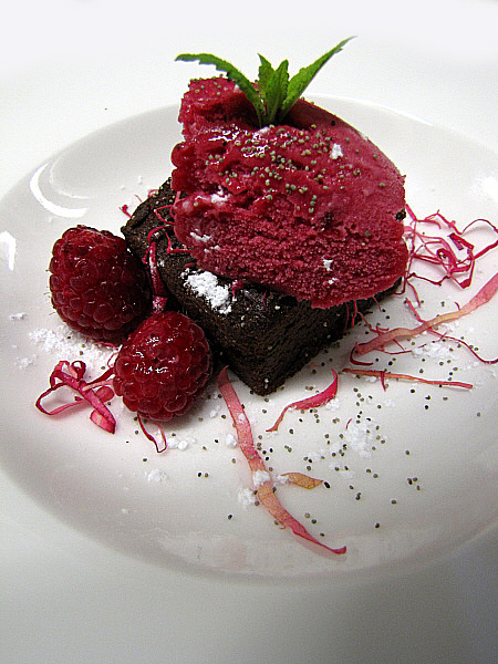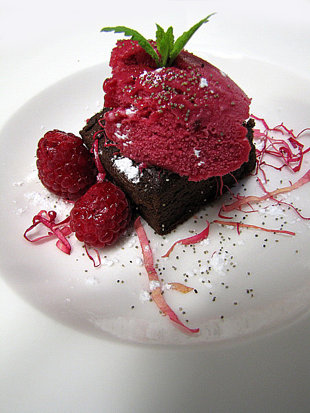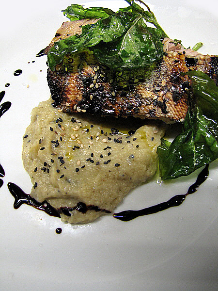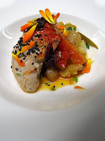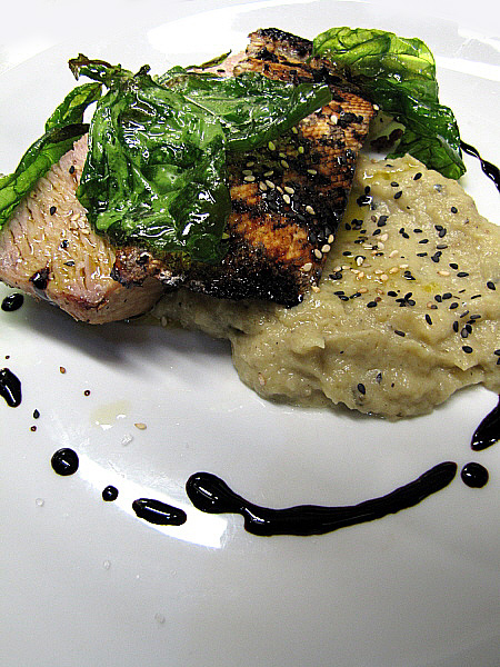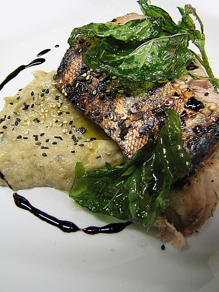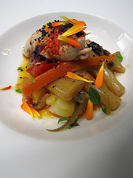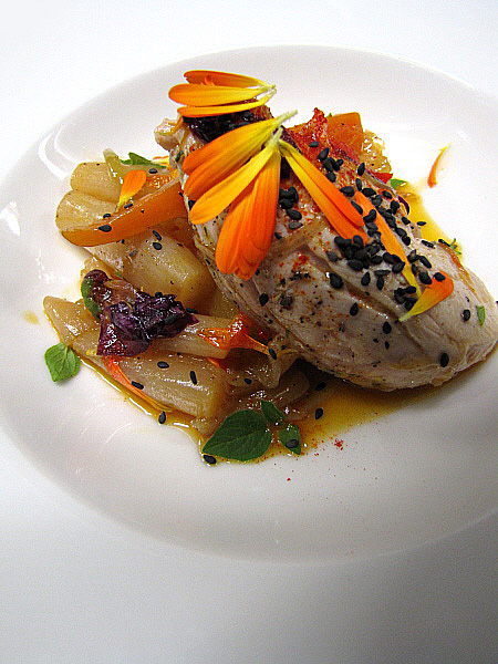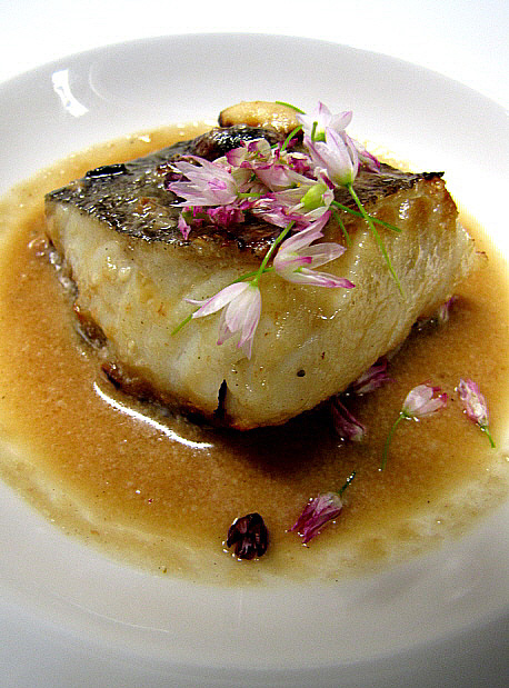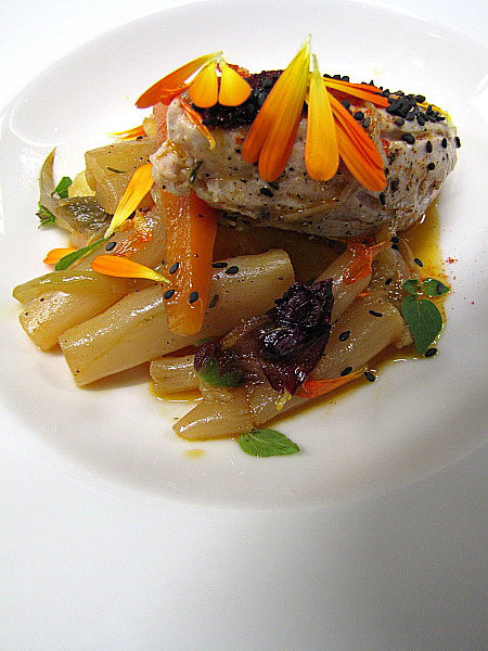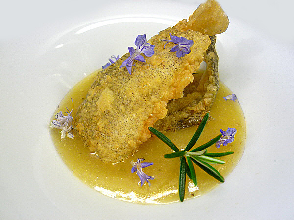 Figa farcida de foie sobre un jaç de fullaraca(Fotografia: La Calèndula)
